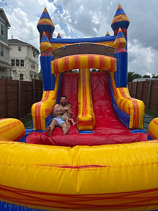 Get the party started in style with the Mighty Bounce & Dual Lane Slide Combo! Bursting with bold primary colors—red, blue, and yellow—this inflatable is a classic crowd-pleaser with a modern twist. The best part? You can choose from a variety of interchangeable banners to match your party theme—princesses, superheroes, characters, or anything your kiddo dreams up! Why Kiddos (and Parents) Love It: ✨ Theme-Ready Front Panel: Choose a fun banner that matches your party. 🎈 Ultimate Party Station: Includes a bounce house, dual-lane slide, climbing wall, AND a basketball hoop! 🌞 All-Season Fun: Whether it's a sunny backyard bash or a school celebration, this combo unit is ready to party all year round. 💧 Splash or Dry Option: Comes with an inflated splash pool—use wet or dry depending on the vibe! 🔧 Worry-Free Setup: We handle the delivery, setup, and pickup so you can enjoy more fun and less fuss. 🚿 Quick Note for Water Play: For wet setups, please ensure a standard garden hose can reach the bounce house location. We'll take care of the rest! Perfect For: Birthday parties, school events, neighborhood block parties, and any occasion that deserves extra bounce!